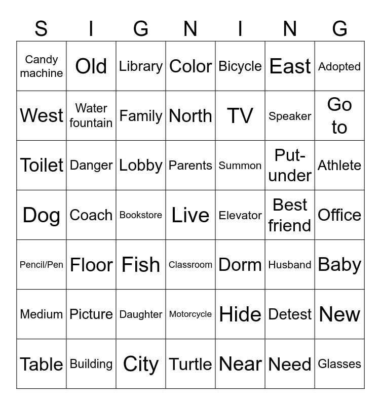 This bingo card has 156 words: Live, Here, Near, Downtown, Water, Park, Hills, Mountains, Area, Shopping Mall, North, South, East, West, City, From, Texas, Fort Worth, Austin, Table, Box, Shelf, Trash can, Backpack, TV, Pencil/Pen, Paper, Book, Apple, Cup, Candy, Picture, Gla, Free!, Live, Here, Near, Downtown, Water, Park, Hills, Mountains, Area, Shopping Mall, North, South, East, West, City, From, Texas, Fort Worth, Austin, Table, Box, Shelf, Trash can, Backpack, TV, Pencil/Pen, Paper, Book, Apple, Cup, Candy, Picture, Glasses, Phone, Shoes, Put-on, Put-under, Put-beside, Put-behind, Put-in, Hide, Look for, Find, Summon, House, Apartment, Dorm, Large, Small, Medium, New, Old, Which, Color, Like, Fine, So-so, Okay, Detest, Toilet, Classroom, Water fountain, Front door, Office, Library, Cafeteria, Soda machine, Candy machine, ATM, Lab, Lobby, Bookstore, Hallway, Exit, Enter, Stairs, Elevator, Floor, Door, Building, Live alone, Mother, Father, Daughter, Son, Husband, Wife, Parents, Children, Family, Boyfriend, Girlfriend, Roommate, Sweetheart, Best friend, Together, Cat, Dog, Bird, Fish, Turtle, Rat, Rabbit, Pet, Have, None, Need, Money, To buy, To practice, To eat, To drink, To wash hands, Thank you, Sometimes, Always, Never, Car, Bicycle, Bus, Train, Motorcycle, Walk, Work, Home, Class, Where, How, Come here, Go to, Baseball, Coach, Homerun, Ambassador, Baseball Glove, Medication, Baby, Forbidden, Danger, Athlete, Helmet, Magazine, Librarian, Puppet, Unity, Elmo, Cartoon, Inspire, Adopted, Win, Pageant, Service Dog, Speaker and Missionary.