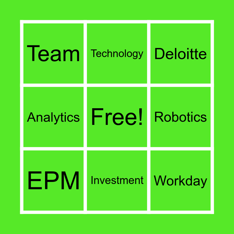 This bingo card has a free space and 48 words: AI, Future, Milan, Italy, Ireland, Transformation, Technology, Automation, Robotics, ERP, EPM, Analytics, RPA, Insightful, Clients, Collaboration, Investment, SAP, Oracle, Workday, UI Path, Agents, Team, Trends, Innovation, Emerging, Growth, Sustainability, Change, Strategy, Digital, Reporting, Metrics, Dashboard, Supply Chain, Stakeholders, Networking, Partnership, AI Agents, Travel, Presentation, Group, Deloitte, Interesting, Learnings, Connections, Teamwork and Preparation.