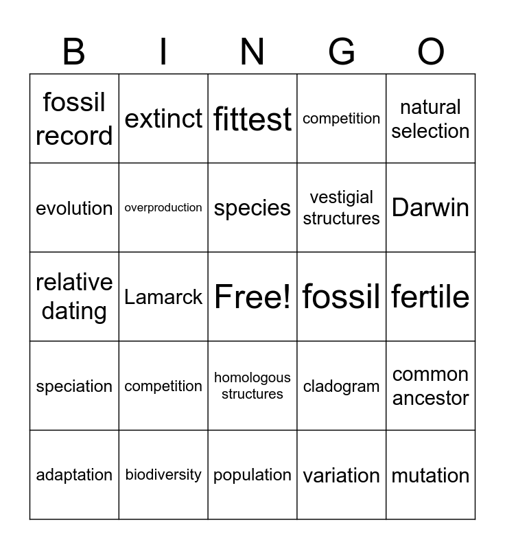 Evolution Bingo | Life Science Chapter 5 | Evolution | Life Science Chapter 5 | UNIT 8 EVOLUTION AND DIVERSITY