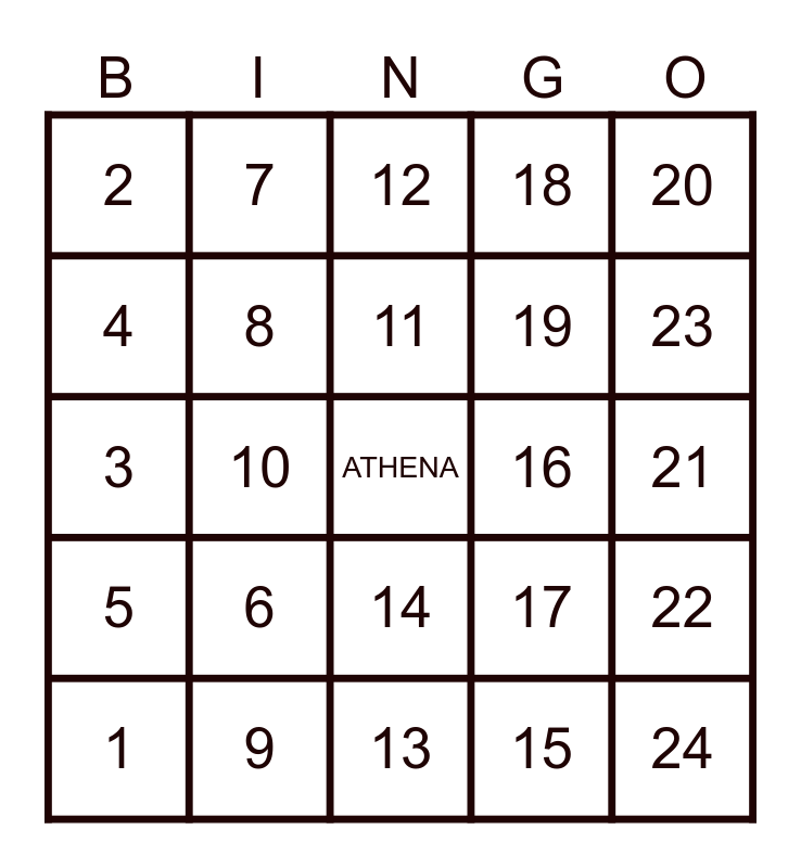 This bingo card has a free space and 24 words: 1, 6, 11, 15, 20, 2, 7, 12, 16, 21, 3, 8, 17, 22, 4, 9, 13, 18, 23, 5, 10, 14, 19 and 24.