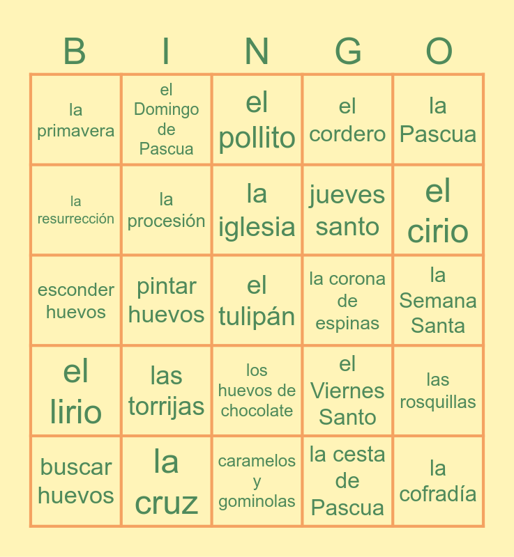 Easter Vocabulary | Pascua Bingo | La Pascua | Semana Santa | Cuaresma Bingo