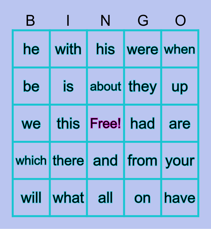 This bingo card has a free space and 49 words: but, by, was, on, are, as, with, one, they, at, be, this, from, have, or, for, his, had, not, he, what, all, were, when, in, there, about, how, your, which, their, and, if, do, will, each, can, a, up, the, of, said, an, to, we, is, you, that and it.