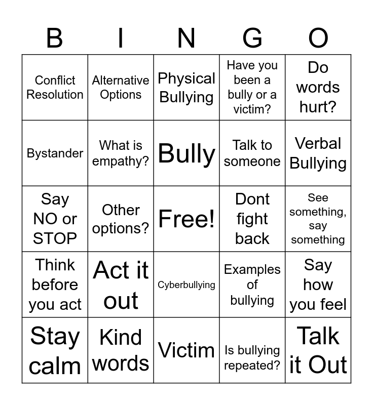 Bully Bingo Cards | Bulling Bingo | STOP Bullying | Bullying Awareness Bingo | No Bullying Bingo