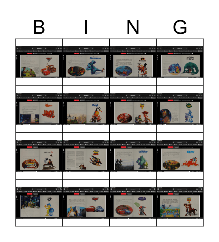 This bingo card has 16 images.