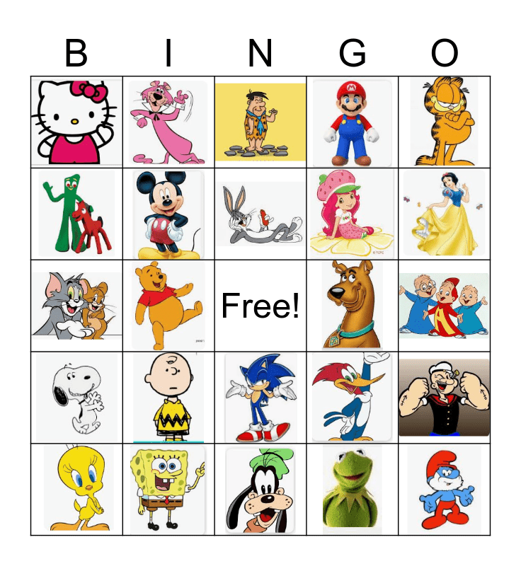 This bingo card has 29 images and a free space.