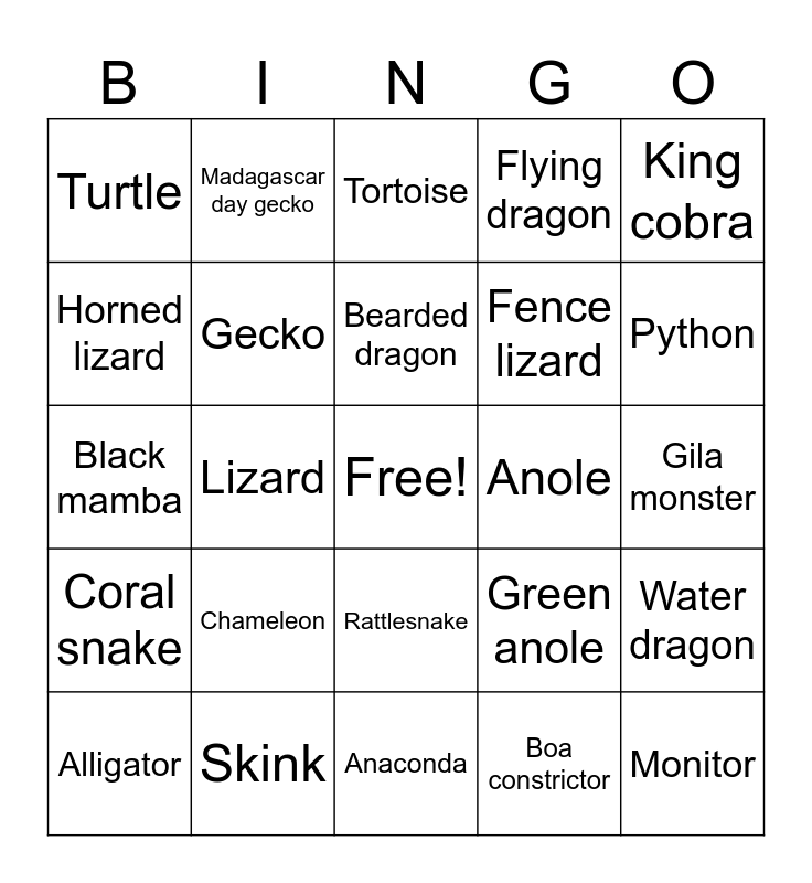 Reptiles (pictures) | Reptile | Reptile | Reptile Bingo! | Bingo