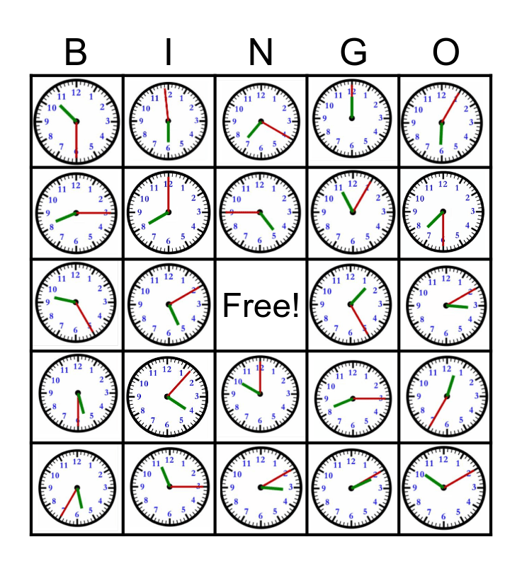 Telling Time Bingo Card