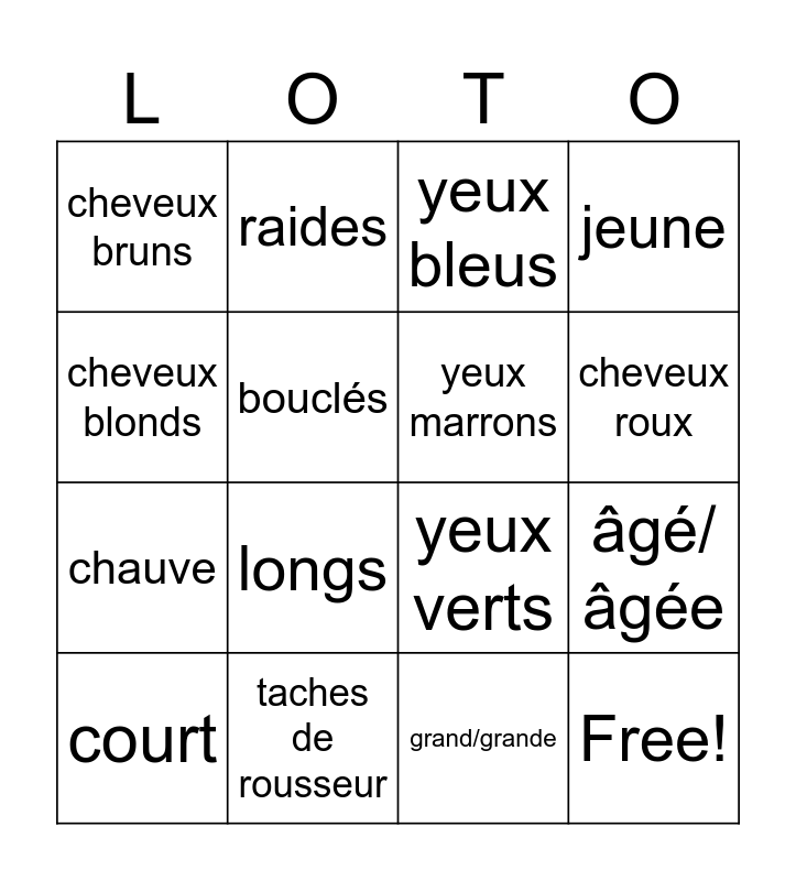 LES YEUX ET LES CHEVEUX | Mes cheveux et mes yeux | Physical Appearance Bingo | Adjectives for Physical Descriptions 2 | La description 3eme
