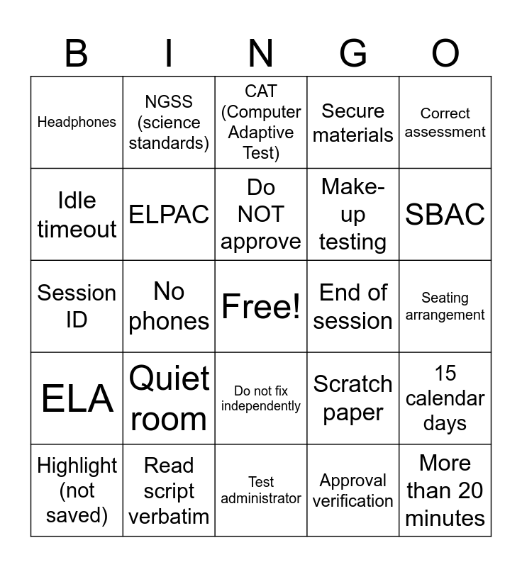 State Testing Bingo | State Testing Bingo | Test Security & Proctoring | CAASPP Bingo | CAASPP Bingo