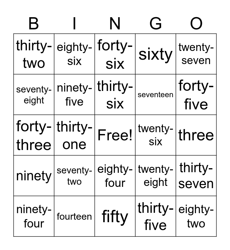 This bingo card has a free space and 100 words: one, two, three, four, five, six, seven, eight, nine, ten, eleven, twelve, thirteen, fourteen, fifteen, sixteen, seventeen, eighteen, nineteen, twenty, twenty-one, twenty-two, twenty-three, twenty-four, twenty-five, twenty-six, twenty-seven, twenty-eight, twenty-nine, thirty, thirty-one, thirty-two, thirty-three, thirty-four, thirty-five, thirty-six, thirty-seven, thirty-eight, thirty-nine, forty, forty-one, forty-two, forty-three, forty-four, forty-five, forty-six, forty-seven, forty-eight, forty-nine, fifty, fifty-one, fifty-two, fifty-three, fifty-four, fifty-five, fifty-six, fifty-seven, fifty-eight, fifty-nine, sixty, sixty-one, sixty-two, sixty-three, sixty-four, sixty-five, sixty-six, sixty-seven, sixty-eight, sixty-nine, seventy, seventy-one, seventy-two, seventy-three, seventy-four, seventy-five, seventy-six, seventy-seven, seventy-eight, seventy-nine, eighty, eighty-one, eighty-two, eighty-three, eighty-four, eighty-five, eighty-six, eighty-seven, eighty-eight, eighty-nine, ninety, ninety-one, ninety-two, ninety-three, ninety-four, ninety-five, ninety-six, ninety-seven, ninety-eight, ninety-nine and one hundred.