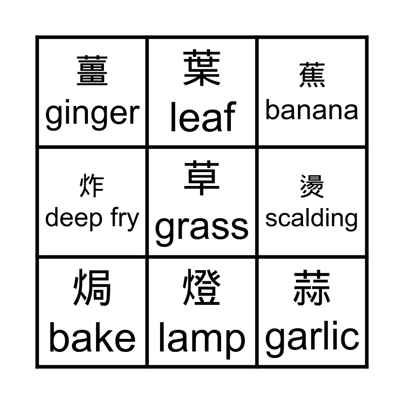 火部首BINGO | 宾果 | FRY BINGO | 2020年2月1日 | Cooking/Mixing Terms
