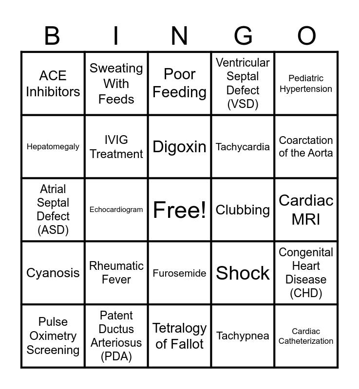 PEDI Bingo | Baby Heart | NR 328 | Cardiology Bingo | Cardiovascular Dysfunctions