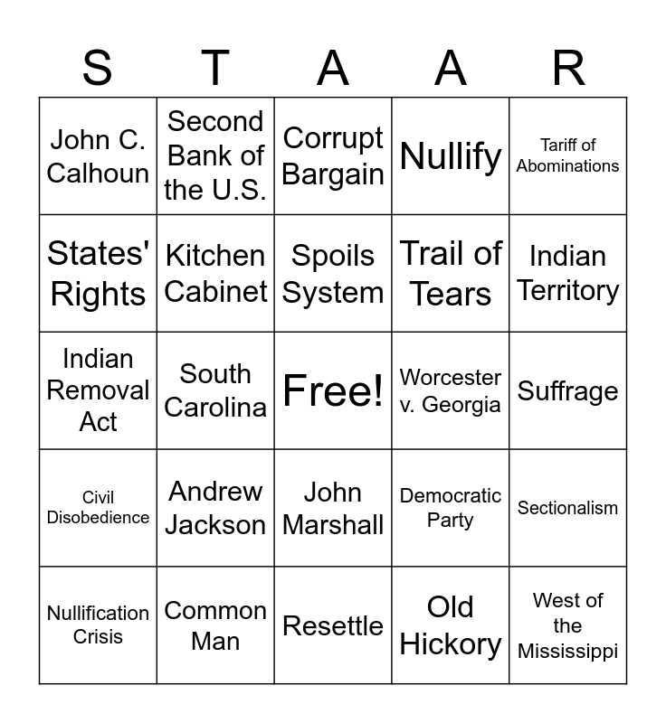 Indian Removal- Final Exam Review | Age of Jackson | Age of Jackson | Ch12 Jackson and Democracy | Unit 3 Bingo