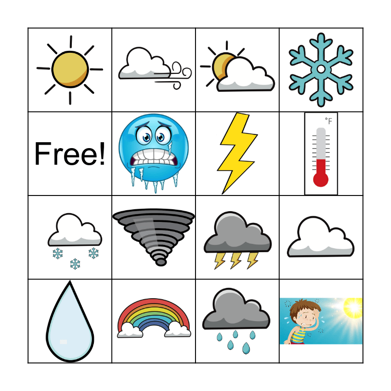 This bingo card has 15 images and 1 words: Free!.