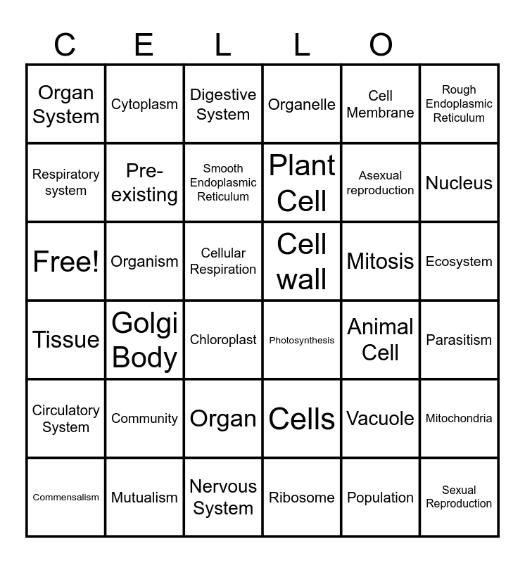 Cell Organelles | Cell Bingo | Life Science Bingo | Cell Structure | Life Science Review