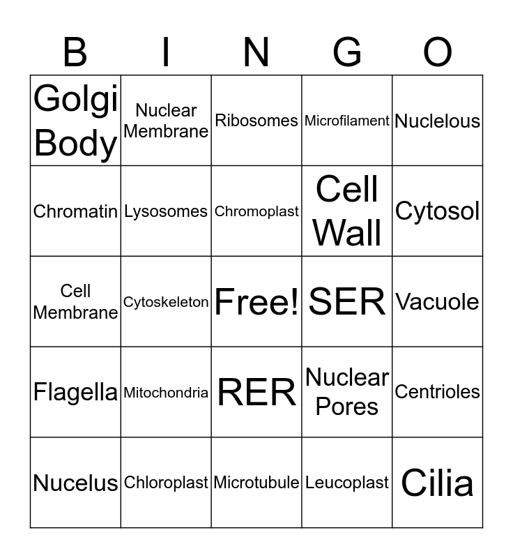 Cell Bingo | Cell Structure Bingo | Untitled Bing | Cell organelle Bingo | Parts of the Cell