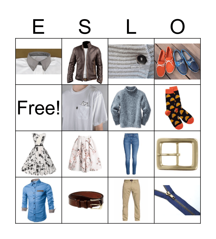 Clothes Part 1 Vocabulary  Bingo Card