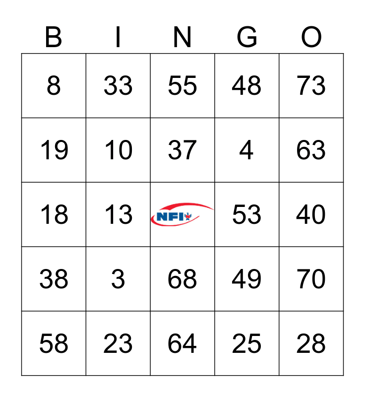 This bingo card has a free space and 24 words: 3, 23, 37, 58, 73, 8, 19, 33, 53, 68, 4, 18, 49, 70, 10, 25, 40, 55, 63, 13, 28, 38, 48 and 64.
