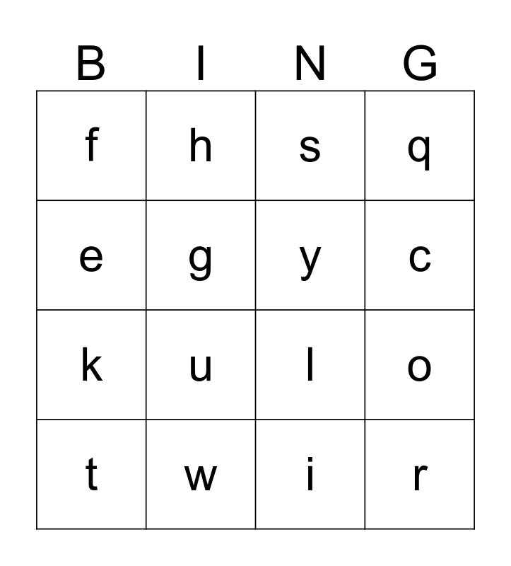 This bingo card has 26 words: a, b, c, d, e, f, g, h, i, j, k, l, m, n, o, p, q, r, s, t, u, v, w, x, y and z.