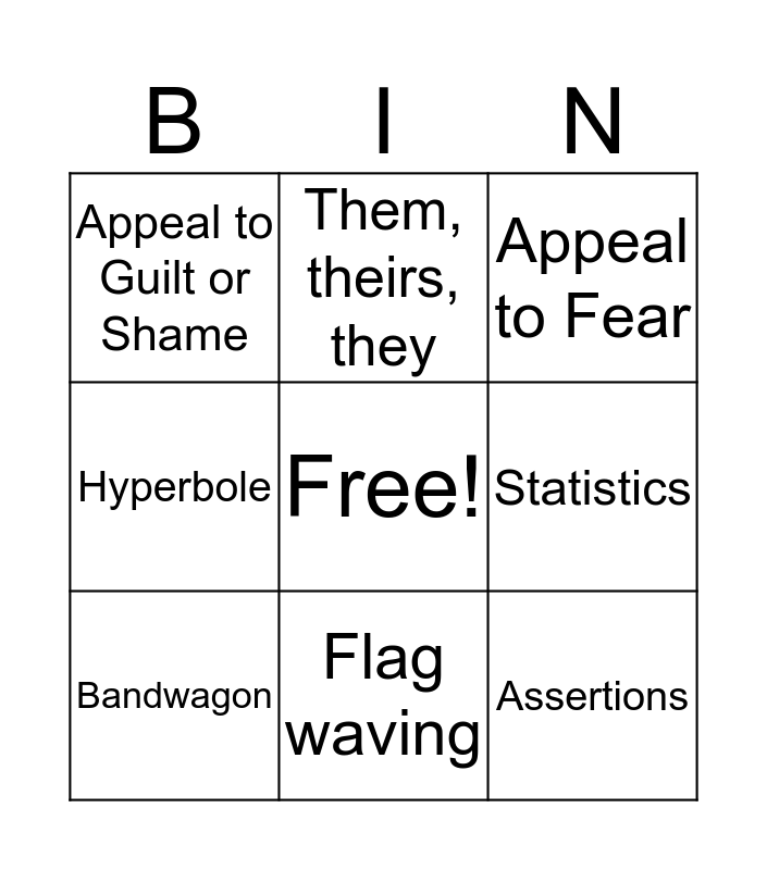 Logical Fallacy Bingo | Persuasive Techniques | Persuasive Techniques | Persuasive Appeals | Persuasive Technique Bingo