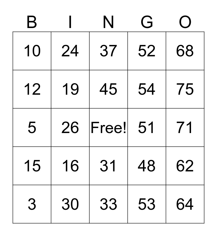 This bingo card has a free space and 70 words: 11, 26, 41, 56, 71, 9, 24, 39, 54, 69, 7, 22, 37, 52, 67, 15, 30, 45, 60, 75, 3, 18, 33, 48, 63, 6, 21, 36, 51, 66, 10, 25, 40, 55, 70, 8, 23, 38, 53, 68, 1, 16, 31, 46, 61, 12, 27, 42, 57, 72, 2, 17, 32, 47, 62, 4, 19, 34, 49, 64, 5, 20, 35, 50, 65, 13, 28, 43, 58 and 73.