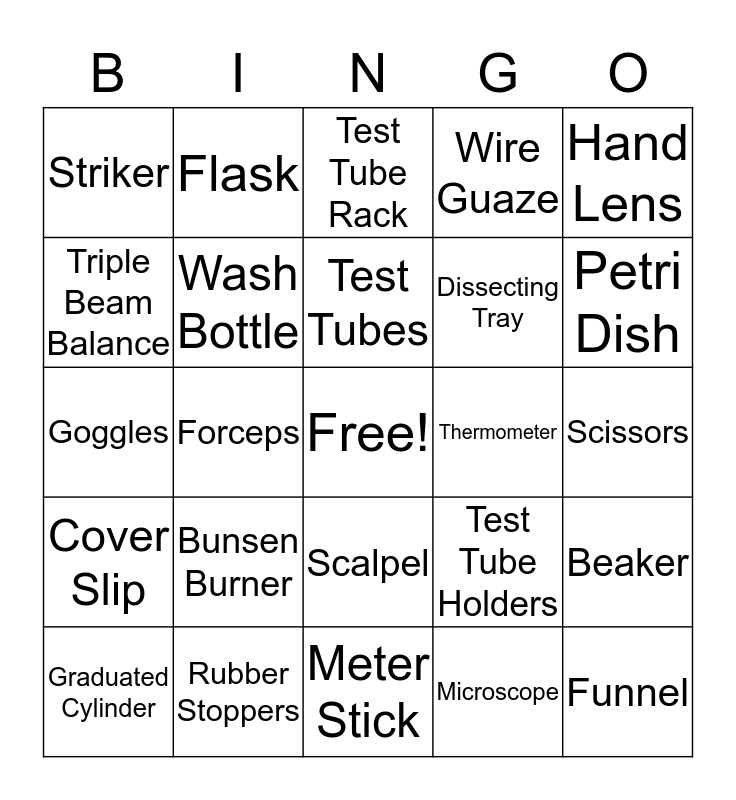 Lab Equipment Bingo | Equipment Bingo | Lab Equipment Bingo (Pictures) | Lab Equipment | Lab and Safety Equipment