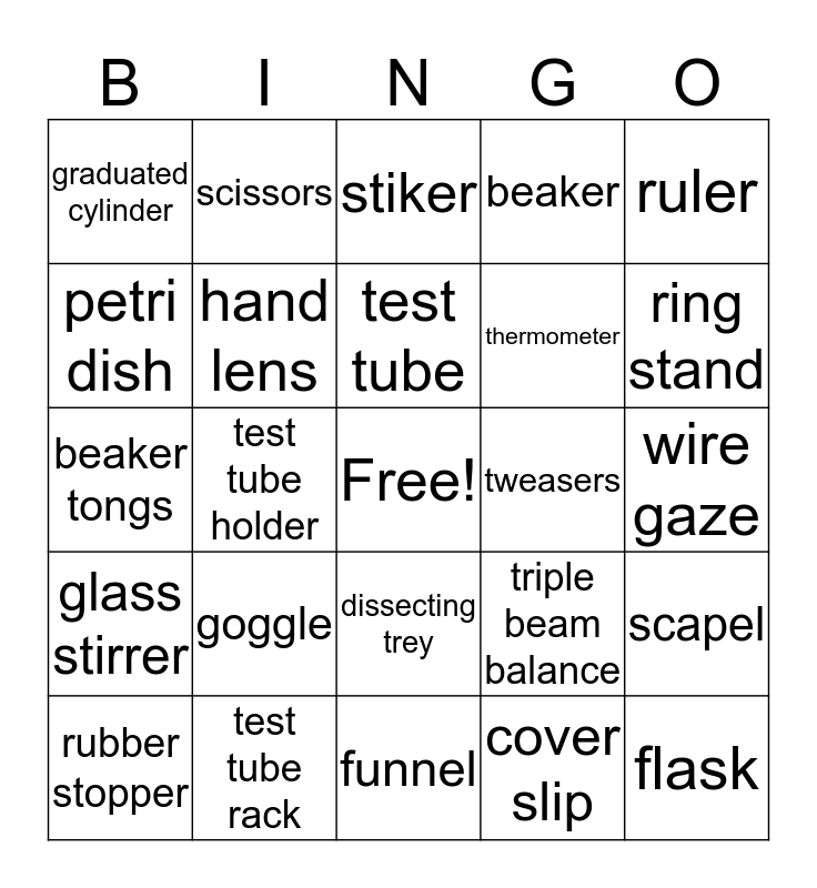 Lab Equipment Bingo | Lab Equipment | Lab Equipment | Lab Equipment | Lab Equipment Bingo (Pictures)