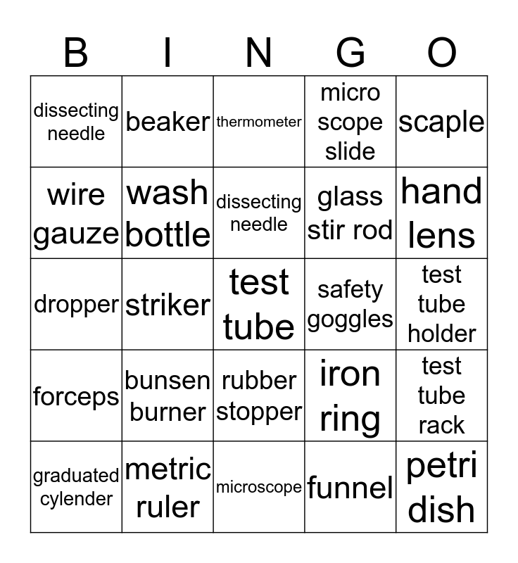 Lab Equipment Bingo | Equipment Bingo | Lab Equipment Bingo (Pictures) | Lab Equipment | Lab and Safety Equipment