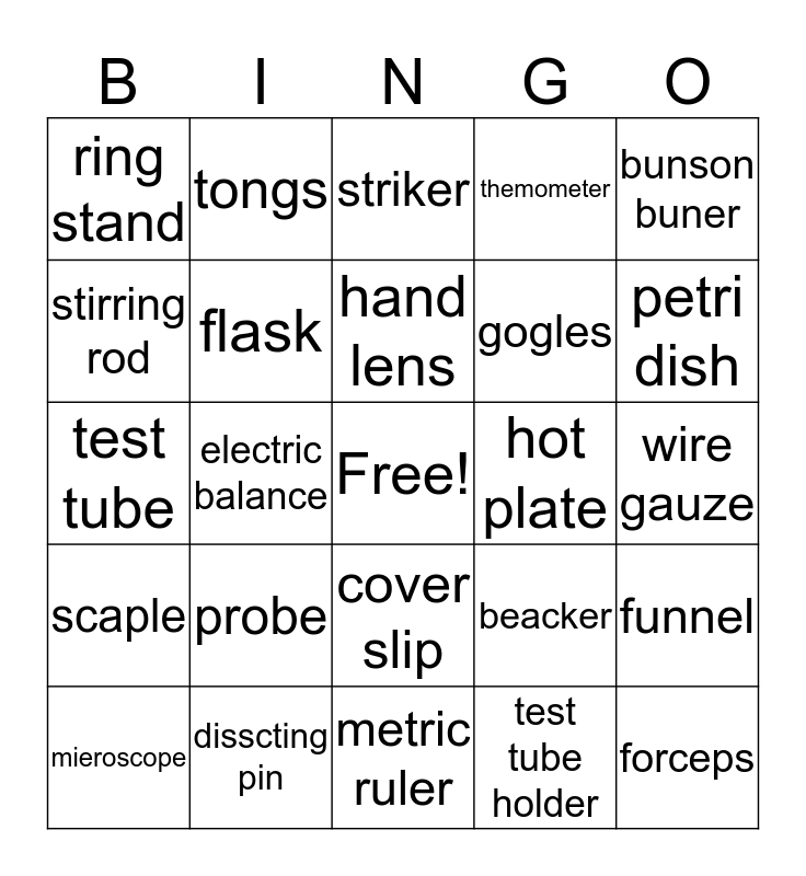 Lab Equipment Bingo | Equipment Bingo | Lab Equipment Bingo (Pictures) | Lab Equipment | Lab and Safety Equipment