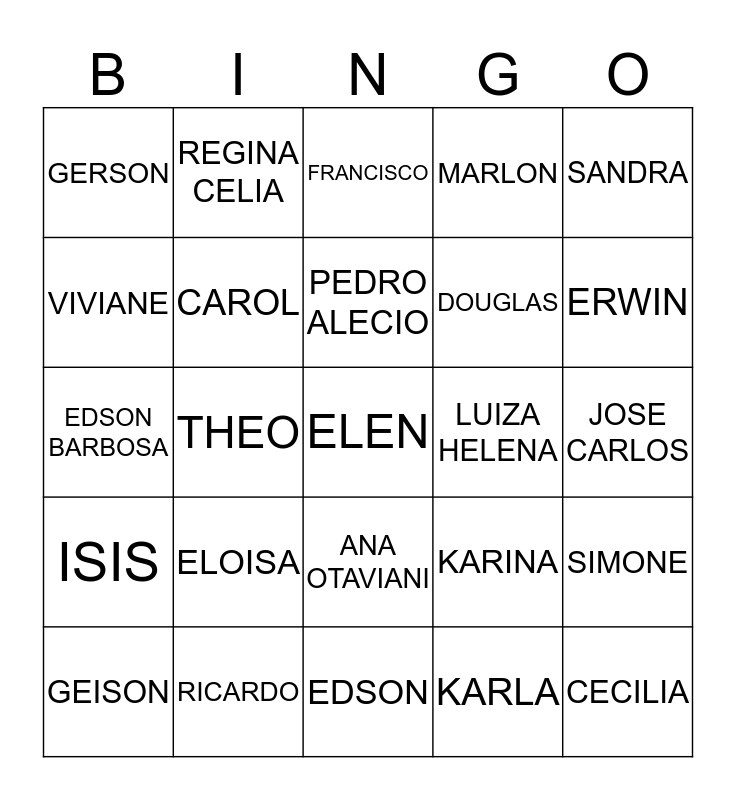 BINGO DE NOMES | BINGO DE NOMES | BINGO DOS NOMES 5º ANO EDUCAÇÃO INTEGRAL | BINGO DE NOMES | BINGO DE NOMES