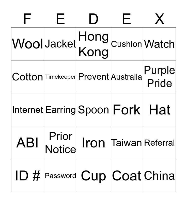 This bingo card has 37 words: Painting, QIP, Antique, Timekeeper, Referral, Prior Notice, Prevent, Manufacturer, Watch, Book, Earring, Cushion, Spoon, Hat, Cotton, ABI, Wheelchair, Hong Kong, Iron, Fork, Wool, Purple Pride, ID #, Cup, Hat, Coat, Jacket, Mangers, Needle, Marked Sample, Cushion, Password, Internet, China, Taiwan, Australia and Pearls.