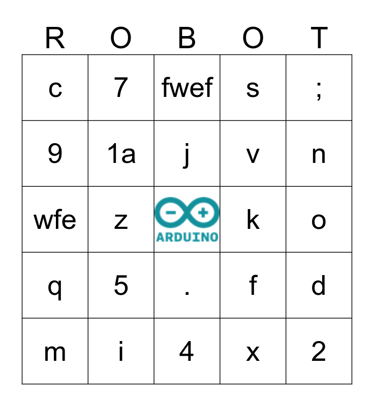 This bingo card has a free space and 47 words: 1, 2, 3, 4, 5, 6, 7, 8, 9, 10, 1a, s, d, f, g, h, j, k, l, ;, z, x, c, v, b, n, m, ,, ., q, e, r, t, y, u, i, o, dw, ew, fw, efefw, fwef, wfe, th, jy, yu and jk.