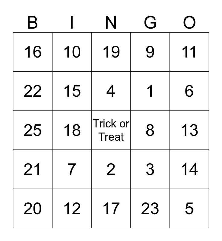 This bingo card has a free space and 24 words: 7, 12, 4, 20, 11, 16, 22, 10, 8, 2, 1, 25, 3, 14, 15, 23, 13, 19, 6, 18, 5, 21, 9 and 17.