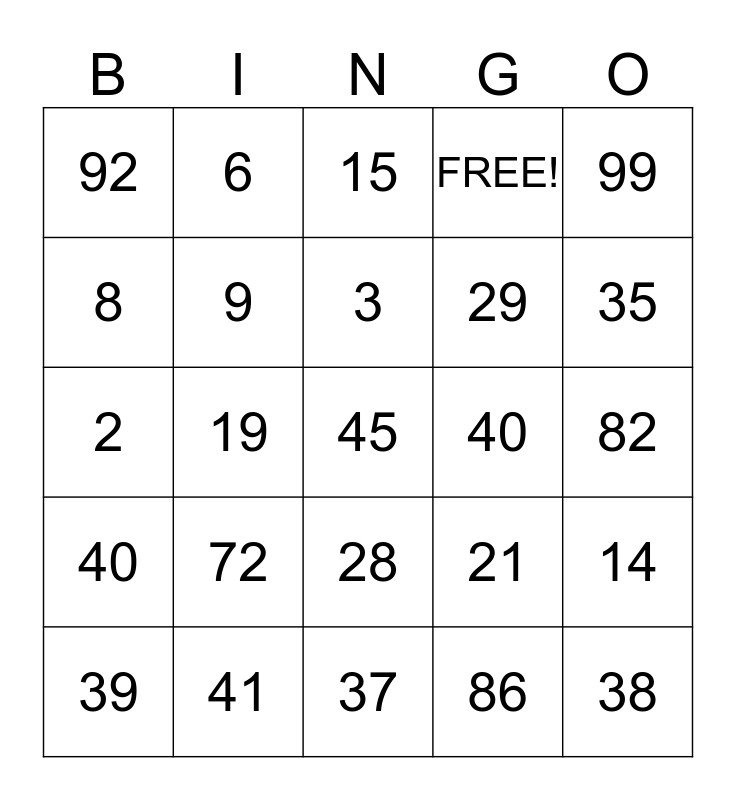This bingo card has 78 words: 80, 50, 15, 16, 18, 22, 74, 34, 67, 32, 98, 43, FREE!, 92, 11, 8, 49, 72, 91, 82, 47, 99, 2, 3, 9, 75, 76, 77, 78, 79, 35, 36, 37, 38, 39, 40, 41, 42, 44, 45, 46, 48, 1, 4, 5, 6, 7, 10, 12, 13, 14, 19, 21, 22, 23, 24, 25, 26, 27, 28, 29, 31, 33, 35, 36, 37, 38, 39, 40, 41, 42, 83, 84, 85, 86, 87, 89 and 0.