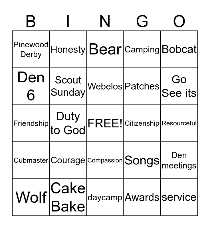 Den 9 Bingo | Tiger Scout Bingo | Cub Scout Bingo | Bear Den Bingo | Cub Scout Spotlight Bingo