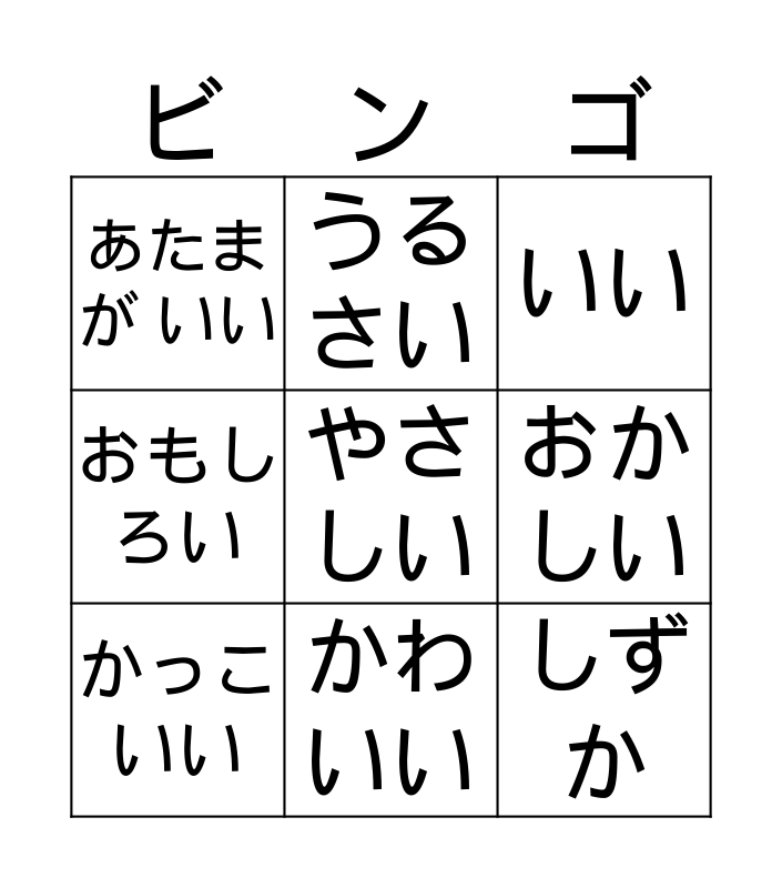Year 7 iiTomo Unit 3 Adjectives | Japanese | ことばのビンゴ | 日本語形容詞/Adjectifs Japonais | Hiragana