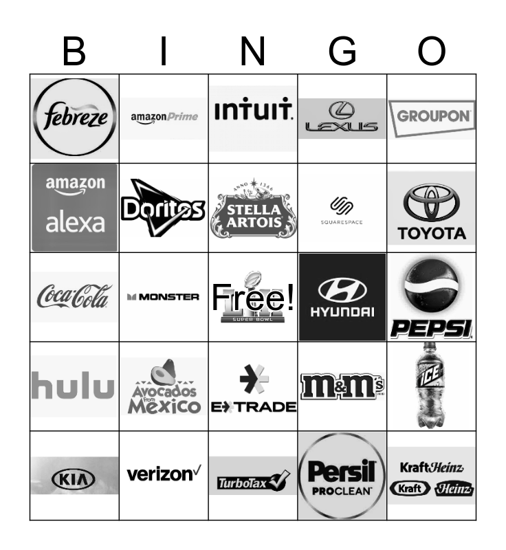 SUPER BOWL COMMERCIAL BINGO Card