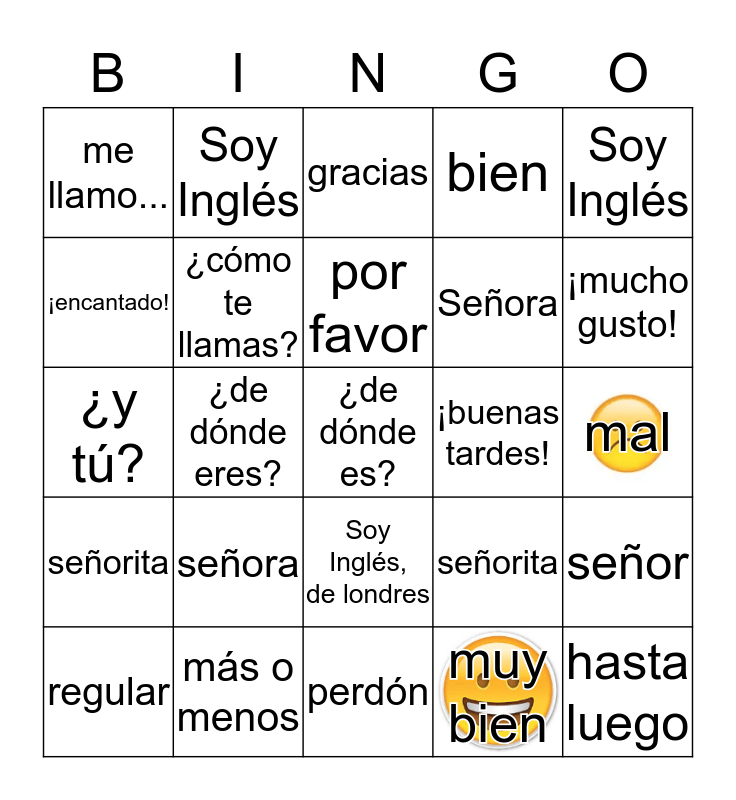 ⚠ This card has duplicate items: Soy Inglés (2), señorita (2), señor (2), ¡mucho gusto! (2)