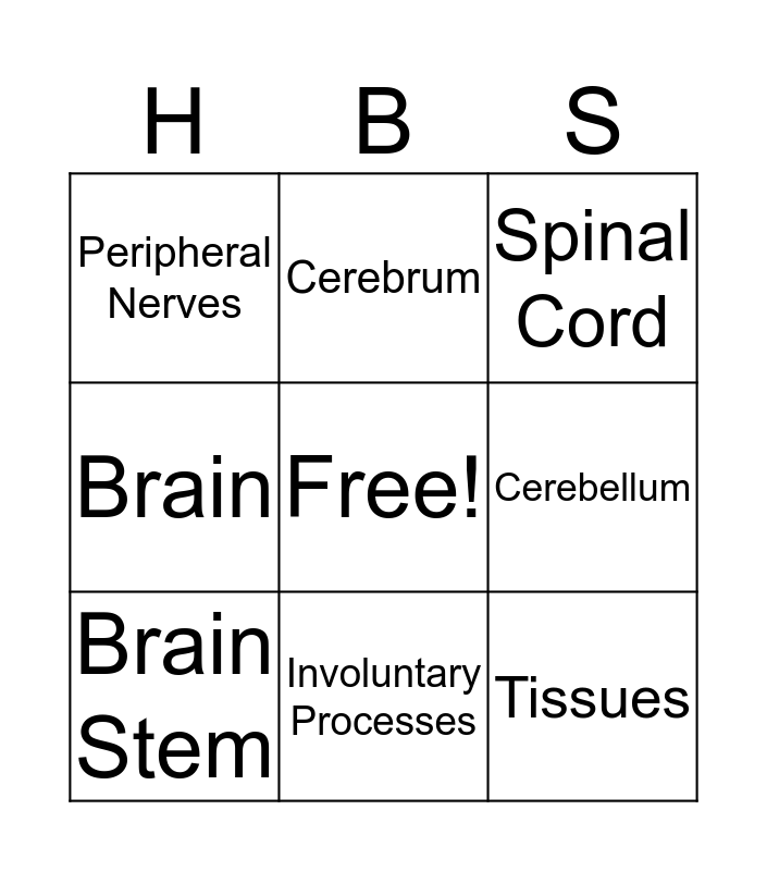 NERVOUS SYSTEM | BRAIN BINGO | Brain Bingo | Brain Bingo | Brain Bingo