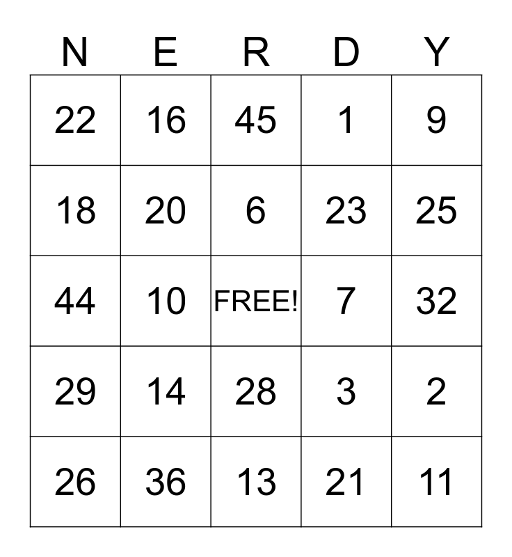 This bingo card has a free space and 49 words: 10, 11, 12, 13, 14, 15, 16, 17, 18, 19, 20, 1, 2, 3, 4, 5, 6, 7, 8, 9, 10, 21, 22, 23, 24, 25, 26, 27, 28, 29, 30, 39, 38, 37, 36, 35, 34, 33, 32, 31, 40, 41, 42, 43, 44, 45, 46, 47 and 50.