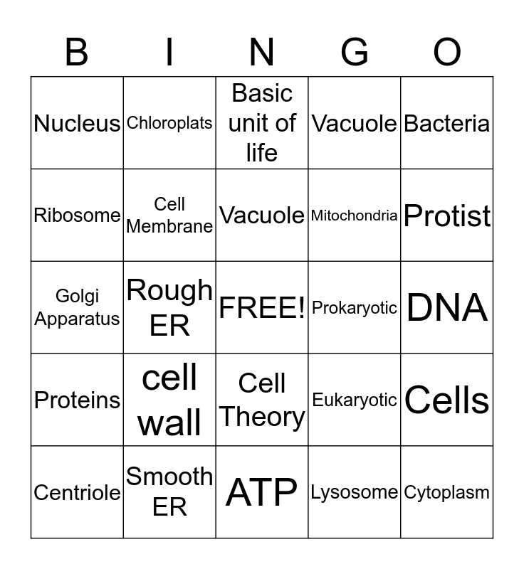 Types of Cells and their Organelles | CELL BINGO | CELL BINGO | Cell Parts | Cell Parts