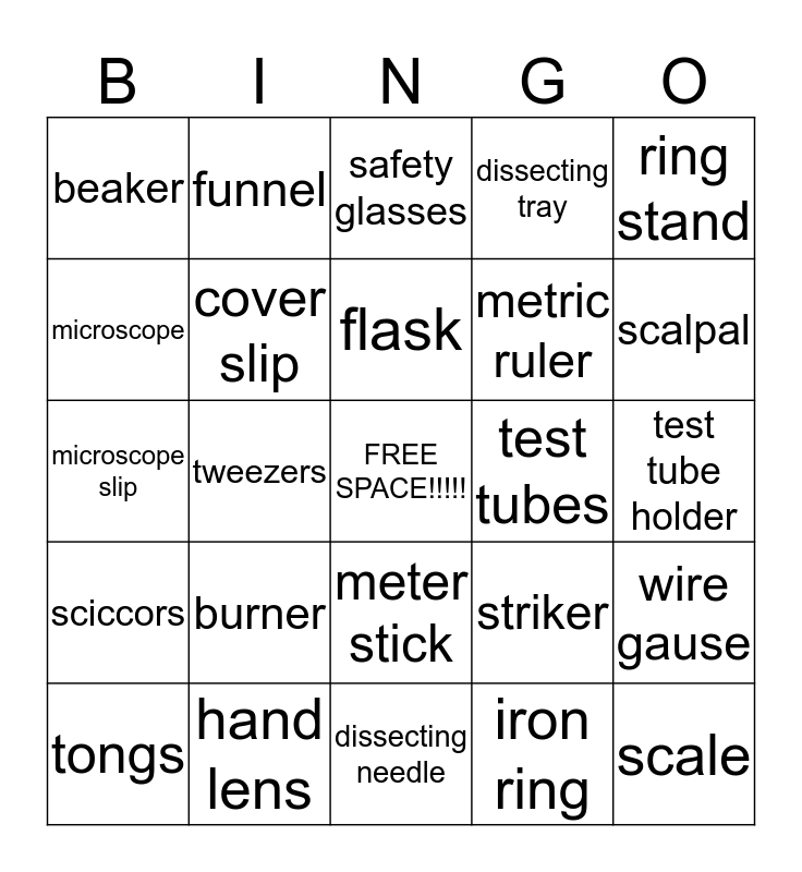 hi | Stuff | Science Bingo | Lab Equipment Bingo | monkey