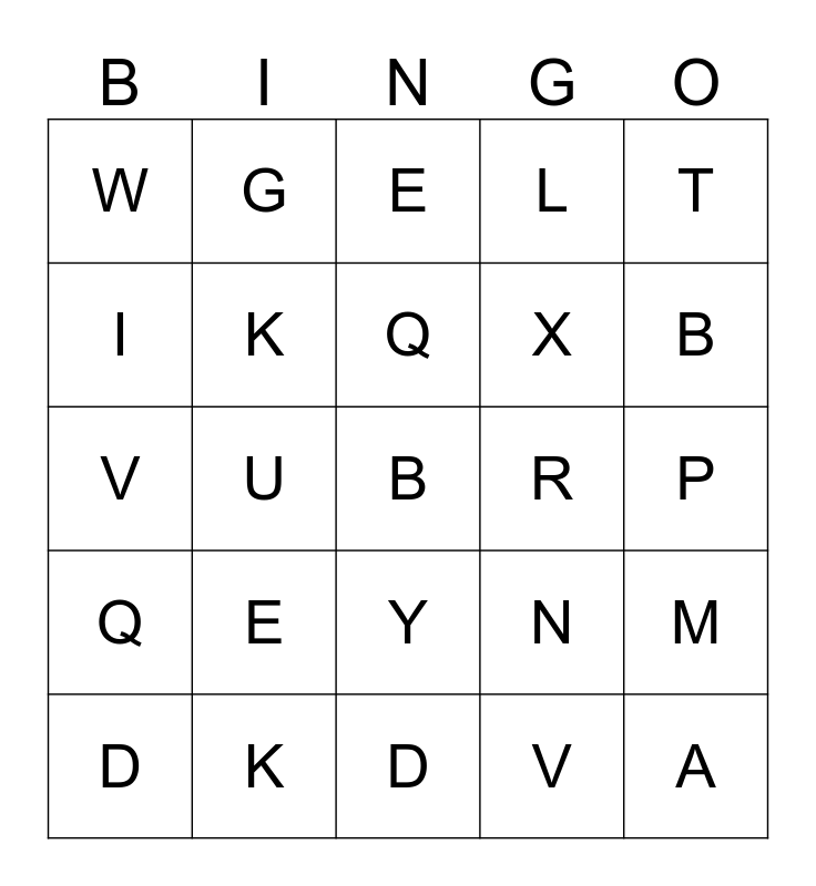 This bingo card has 51 words: A, B, C, D, E, F, G, H, I, J, K, L, M, N, O, P, Q, R, S, T, U, V, W, X, Y, A, B, C, D, E, F, G, H, I, J, K, L, M, N, O, P, Q, R, S, T, U, V, W, X, Y and Z.