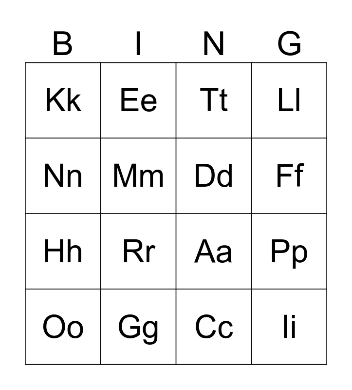 This bingo card has 19 words: Aa, Ss, Tt, Ii, Pp, Nn, Cc, Kk, Ee, Hh, Rr, Mm, Dd, Gg, Oo, Uu, Ll, Ff and Bb.