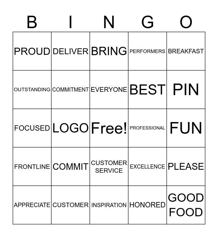 This bingo card has a free space and 93 words: 2018, BEST, INSPIRATION, MAP, ACCOMPLISH, ACTIVITIES, ANNUALLY, APPRECIATE, APPRECIATED, AWARD, AWARENESS, AWESOMENESS, BERRY, BEST, BOOST MORALE, BREAKFAST, BRING, BUSINESS, CALL CENTER, CARING, CELEBRATE, CELEBRATION, CHALLENGE, CHARMING, COMMIT, COMMITMENT, COMMUNITY, CONNECT, CONTRIBUTIONS, CREATIVE, CUSTOMER, CUSTOMER SERVICE, CUSTOMERS, DEDICATE, DELIVER, DELIVERY, DISTINCTIVE, ENJOY, EVERYONE, EXCELLENCE, FOCUSED, FRONTLINE, FUN, GAMES, GOOD FOOD, GRAPE, GREAT, HAPPENS, HAPPY, HELP, HERE, HONORED, IDEAS, IMPORTANCE, IMPORTANT, INCLUDED, INVITE, LEARNING, LIFE, LIME, LOGO, LUNCH, MAY I, MISSION, MORALE, MOTIVATE, MOTIVATION, ORGANIZATION, OUTSTANDING, PARTICIPATE, PARTICIPATION, PARTY, PATIENCE, PERFORMERS, PHOTOBOOTH, PHOTOS, PIN, PLEASE, PLEDGE, POLITE, PREPARED, PRIZES, PROFESSIONAL, PROUD, PROVIDE, PUZZLES, RECOGNIZE, RE-ENERGIZE, REMIND, REPS, REWARD, ROLE and SATISFACTION.