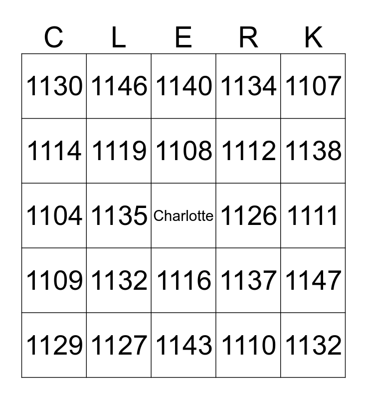 This bingo card has a free space and 40 words: 1100, 1104, 1105, 1119, 1127, 1116, 1108, 1106, 1107, 1109, 1135, 1134, 1132, 1111, 1126, 1132, 1131, 1130, 1133, 1140, 1147, 1110, 1112, 1114, 1120, 1113, 1115, 1118, 1121, 1127, 1128, 1129, 1131, 1137, 1138, 1143, 1144, 1145, 1146 and 1149.