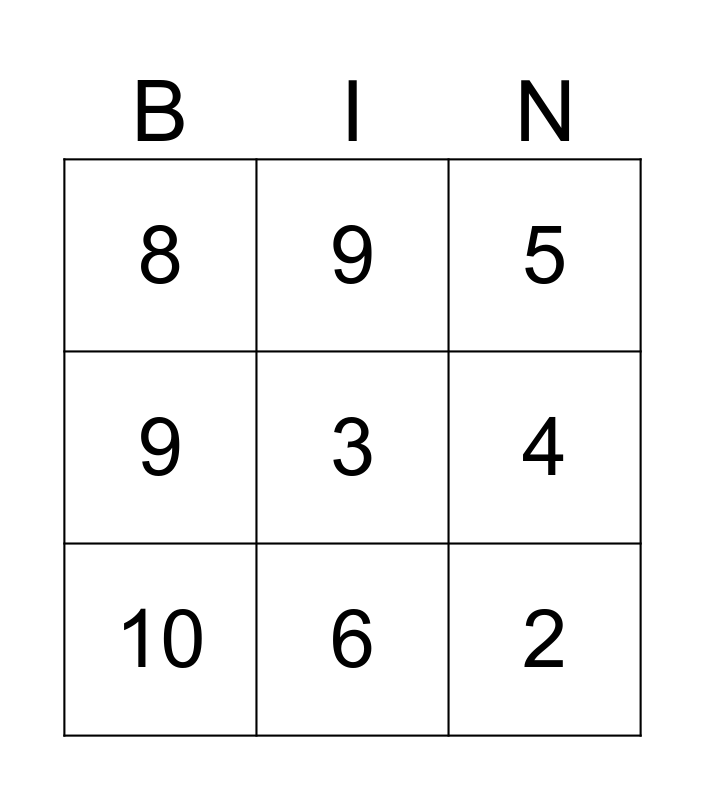 This bingo card has 12 words: 1, 2, 3, 4, 9, 5, 6, 7, 8, 9, 10 and 11.