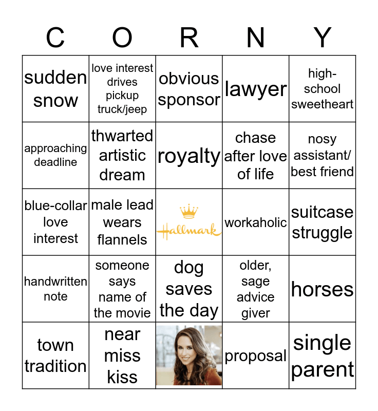 This bingo card has 2 images, a free space and 42 words: single parent, matchmaker child, town tradition, city-slicker, proposal, obvious sponsor, town party/ festival, high-school sweetheart, near miss kiss, lawyer, workaholic, dog saves the day, someone says name of the movie, "accidental" fall, dead spouse, blue-collar love interest, hospitality industry, nosy assistant/ best friend, love interest drives pickup truck/jeep, family business trouble, local bakery/ coffee shop, sudden snow, male lead named Josh, Jack, or Jake, suitcase struggle, canceled flight, man who may be Santa, older, sage advice giver, handwritten note, main characters don't like eachother at first, horses, girl wearing inapporpriate footwear, writer/ reporter/ reviewer, male lead wears flannels, huge misunderstanding, up for a promotion, family fued, royalty, approaching deadline, chase after love of life, eavesdropping, thwarted artistic dream and makeover.