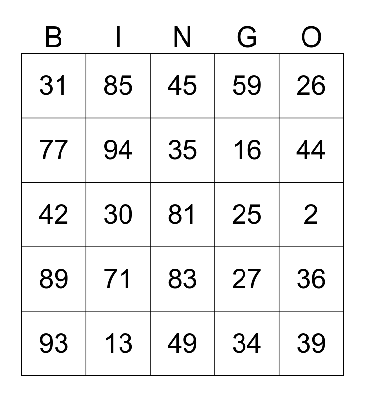 This bingo card has 100 words: Free!, 1, 2, 3, 4, 5, 6, 7, 8, 9, 10, 11, 12, 13, 14, 15, 16, 17, 18, 19, 20, 21, 22, 23, 24, 25, 26, 27, 28, 29, 30, 31, 32, 33, 34, 35, 36, 37, 38, 39, 40, 41, 42, 43, 44, 45, 46, 47, 48, 49, 50, 51, 52, 53, 54, 55, 56, 57, 58, 59, 60, 61, 62, 63, 64, 65, 66, 67, 68, 69, 10, 71, 72, 73, 74, 75, 76, 77, 78, 79, 80, 81, 82, 83, 84, 85, 86, 87, 88, 89, 90, 91, 92, 93, 94, 95, 96, 97, 98 and 99.