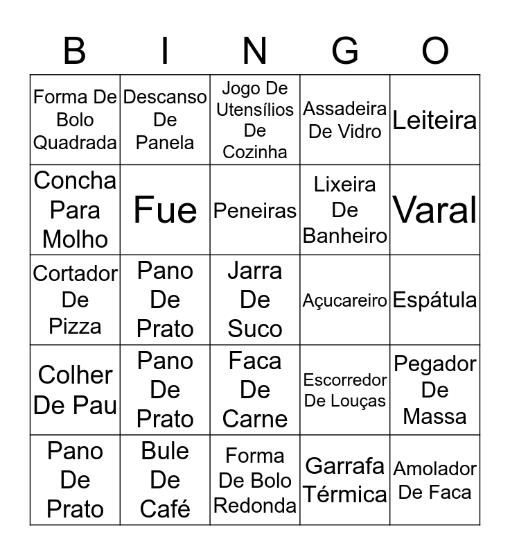 This bingo card has 56 words: R❤️I Bônus, Pano De Prato, Rodo De Pia, Forma De Bolo Quadrada, Forma De Bolo Redonda, Forma De Pudim, Fue, Vasilhas De Plástico, Lixeira De Banheiro, Lixeira De Cozinha, Assadeira De Vidro, Pano De Prato, Espremedor De Batata, Ralador De Legumes, Espremedor De Alho, Tabua De Carne, Leiteira, Pano De Prato, Jarra De Água, Jarra De Suco, Açucareiro, Saleiro, Escorredor De Louças, Jogo De Utensílios De Cozinha, Descanso De Legumes, Peneiras, Rolo De Massa, Tesoura De Cozinha, Varal, Prendedor De Roupas, Luva Térmica, Forma De Gelo, Faca Cutelo, Pano De Prato, Espátula, Concha Para Molho, Cortador De Pizza, Copo De Medida, Colher De Pau, Descanso De Panela, Faca De Carne, Amolador De Faca, Pano De Prato, Chaleira, Abridor De Lata E Garrafa, Pano De Prato, Bule De Café, Avental, Desentupidor De Pia, Escova Para Pia, Garrafa Térmica, Frigideiras, Porta Tempero, Manteigueira, Pegador De Massa and Pegador De Salada.